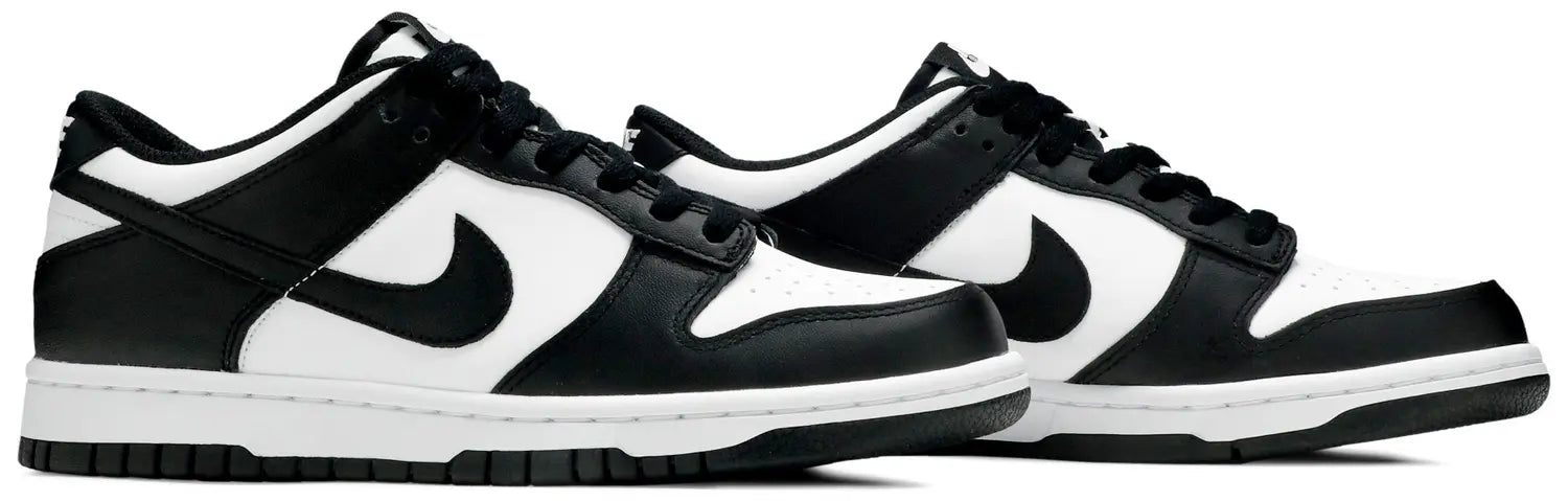 Built for big kids, the Nike Dunk Low GS ‘Black White’ showcases a simplistic two-tone color scheme that accentuates the sneaker’s clean lines, born from the same designer — Peter Moore — that also created the Air Jordan 1. The low-top’s leather upper, combining a white base with starkly contrasting overlays in basic black, rides on a low-profile midsole. Underfoot, the rubber outsole is equipped with a traction pattern specifically designed for quick pivots on the hardwood.