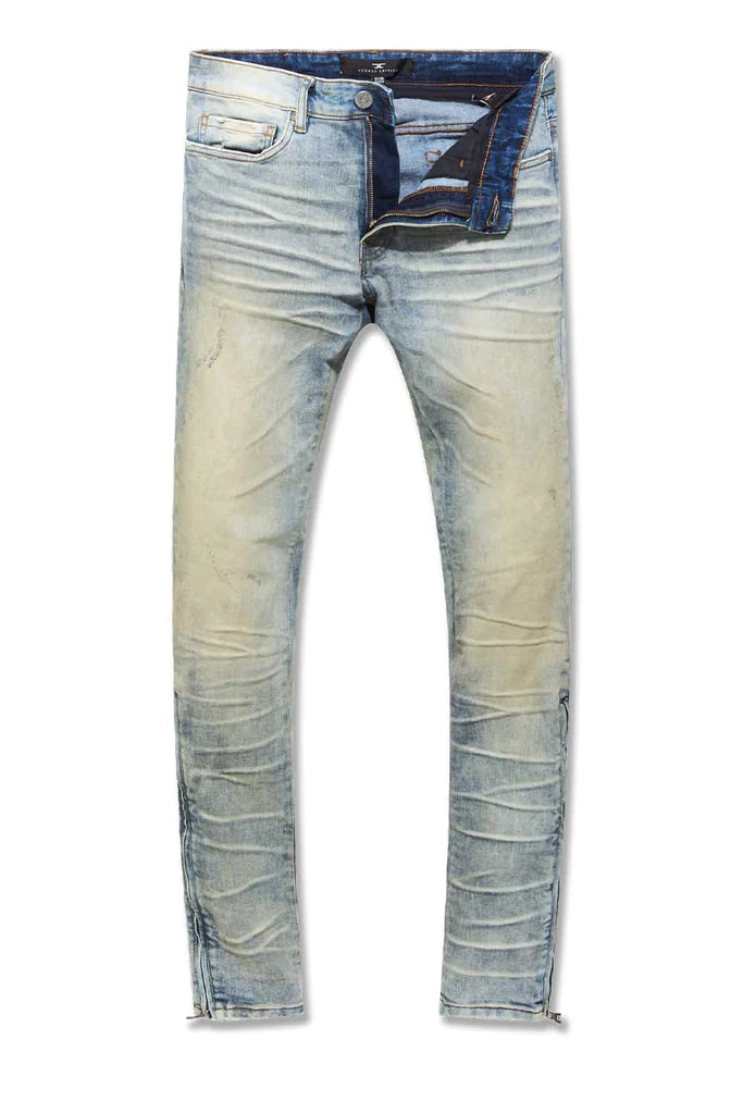 - Skinny tapering from knee to ankle