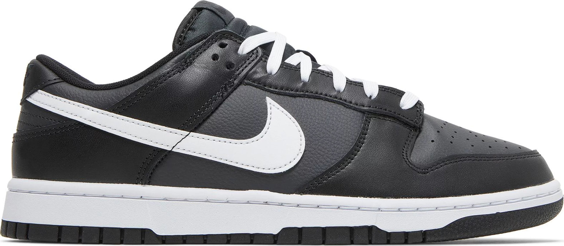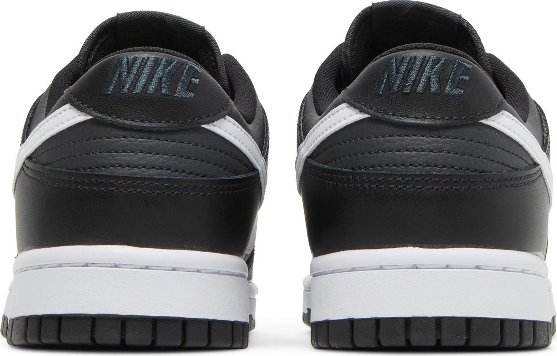 The Nike Dunk Low ‘Black Panda’ showcases a versatile and simplistic two-tone palette on the hardwood stalwart. A solid black finish is applied to the upper, featuring a tumbled leather base with smooth leather overlays. Contrasting white accents appear on the laces and signature Swoosh, while tonal Nike branding decorates the back tab and woven tongue tag. A rubber cupsole pairs white sidewalls with a black rubber outsole with pivot circles for durable traction.