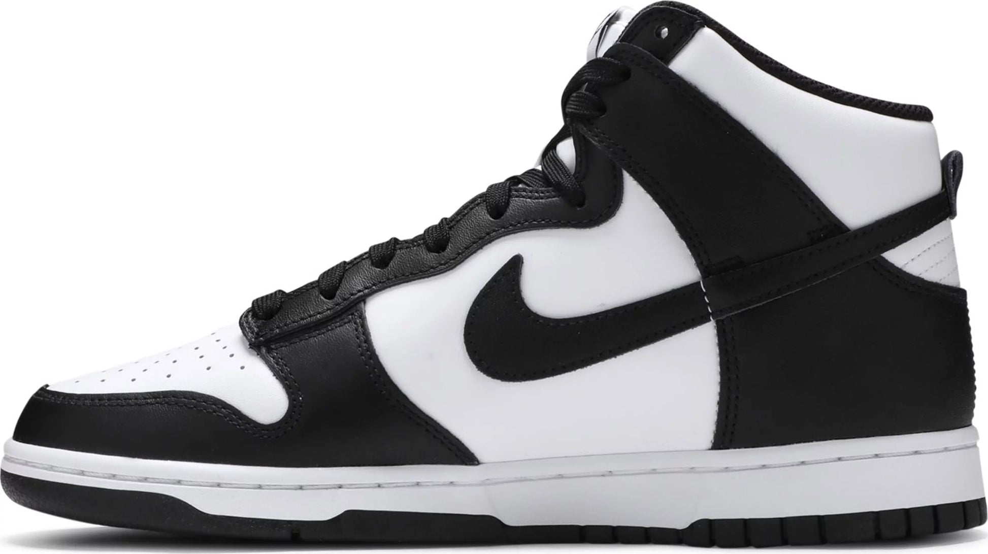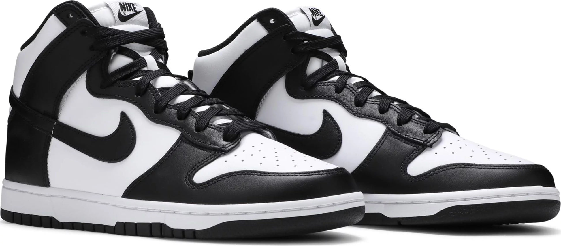 The Nike Dunk High ‘Black White’ also known as ‘Panda’ brings an elemental two-tone design to the heritage silhouette. The color blocking and materials are true to the original 1985 release, highlighted by a leather upper in sharply contrasting black and white tones. Atop the lightly padded nylon tongue, a woven tag displays crimson Nike branding for an unexpected flash of color. Underfoot, the rubber outsole features a time-tested traction pattern originally developed for the collegiate hardwood.